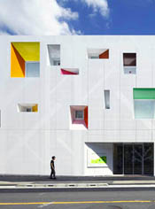 U pomalo usporenom, rezidencijalnom dijelu Tokija, francuska arhitektica Emmanuelle Moureaux je dovršila projekt vrijedan male bankovne revolucije. Riječ je o poslovnici jedne od najvećih japanskih banki Sugamo Shinkin Bank. Banka je zamišljena kao prozračna i razigrana konstrukcija, kako bi što više negirala pomalo zastrašujuću korporativnu atmosferu konvencionalnih financijskih ustanova. Arhitektica je potpuno izbjegavala agresivnu signalizaciju, tako da zgrada identitet dobiva isključivo preko živih boja koje uokviruju ritmično postavljene prozore. Umjesto betona, Moureaux se odlučila za bijelu aluminijsku fasadu, a ulaze u zgradu označava dekoracija u obliku stiliziranog drveća. Iza fasade se nalazi prostor namijenjen za opuštanje i sastanke sa klijentima, pomalo dječje uređen sa stolcima u četrnaest različitih boja, motivom lišća po zidovima i staklenim atrijima.