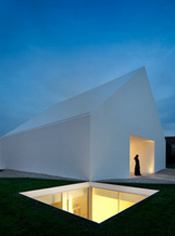 Ipak, uz kompleksnu i promišljenu upotrebu otvora, raspoređivanje funkcija je poprilično banalno: kuća je podijeljena na privatni dio sa sobama i zajednički dio sa dnevnim sobama i blagovaonicama. Privatni dio je smješten iznad razine zemlje u kući prepoznatljive, arhetipske forme. Svaka soba ima svoje dvorište koje je povezno sa otvorom u krovu. Dnevne sobe su smještene ispod središnjeg dvorišta i organizirane oko otvora u zemlji iz kojeg je pogled uperen prema dvorcu. Je li riječ o profinjenosti minimalizma ili pak o introvertiranom konceptu koji postaje sam sebi svrha i ne zadovoljava jednu od elementarnih uvjeta kuće- prozora koji omogućuju pogled, sami prosudite.