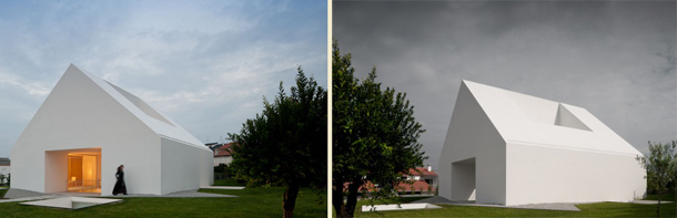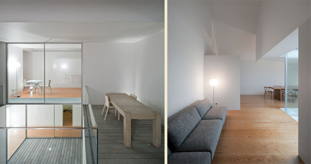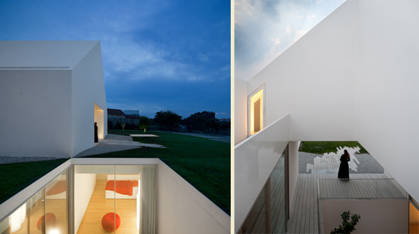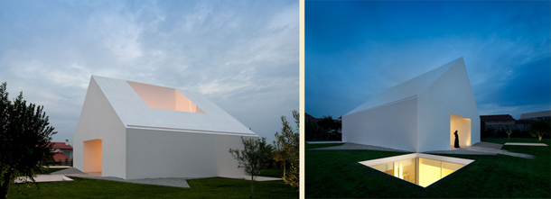 Arhitektonski ured Manuel Aires Mateus potpisuje dizajn ove jedinstvene i kreativne kuće, propitujući hijerarhiju planova i odnosa punog i praznog. Kako bi istražio mogućnosti zajedničkog zatvorenog prostora, a da ne naruši harmoniju malog mjerila kuće, arhitekt je odlučio iskoristiti podzemnu etažu kao dnevnu sobu. Ipak, problem optimalne svjetlosti riješen je velikim staklenim otvorom koji ponavlja ideju atrija srednjevjekovnog dvorca. Koncept kuće je baziran na stvaranju tri duboka otvora kojima se ostvaruje maksimalan dotok svjetlosti. Upravo lomljenjem zidova na strateškim mjestima, svjetlost se odbija i ispunjava svaki kutak kuće.