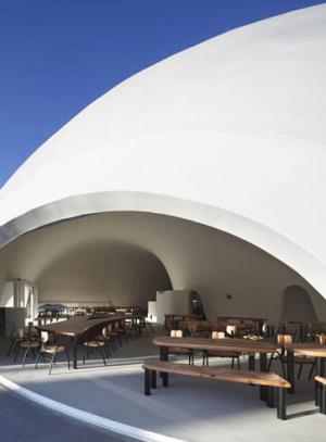 Hoto Fudo je restoran kojeg su osmislili arhitekti iz studija Takeshi Hosaka Architects. Posebnost ovog objekta je u njegovom obliku, nježnog geometrizma, koji podsjeća na oblak ili eskimsku nastambu iglu te odmiče od uobičajenih figura restorana, primjerice kvadrata i kruga, izvanredno se uklapajući u scenografiju japanskog gradića nad kojim dominira planina pokrivena snijegom. Kuća se koristi gotovo cijele godine, izuzev najhladnijih zimskih dana ili za vrijeme snažnih vjetrova, kada se samo zatvaraju zakrivljena akrilna klizna vrata.
