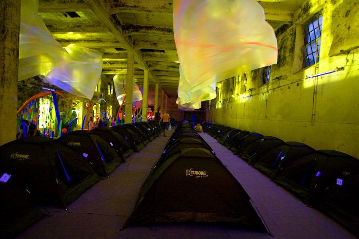 Velika dvorana, u kojoj je smješten hotel i lounge prostor, dvobrodna je tvornička hala, gdje je u jednoj polovici smješten lounge prostor sa posebno izrađenim separeima, u drugoj je poredano 100 šatora s recepcijom za goste hotela, a cijeli prostor osvijetljen je UV svjetlom sa 12 velikih rotirajućih lustera.