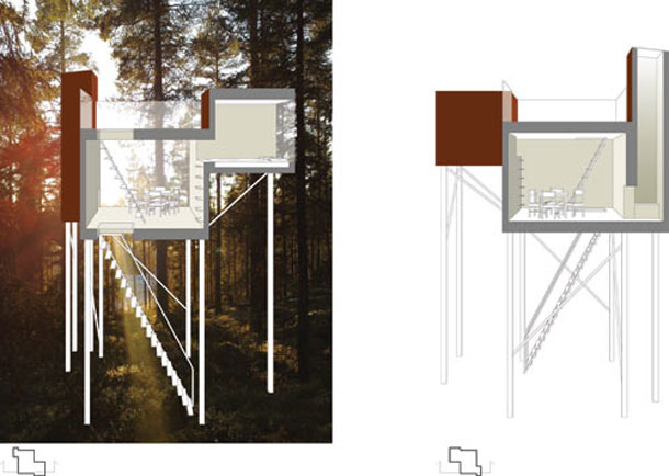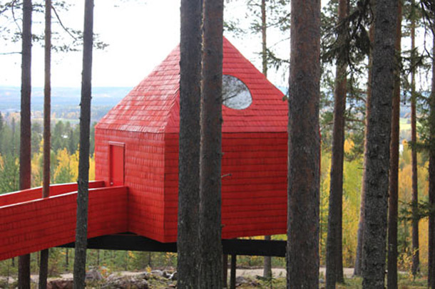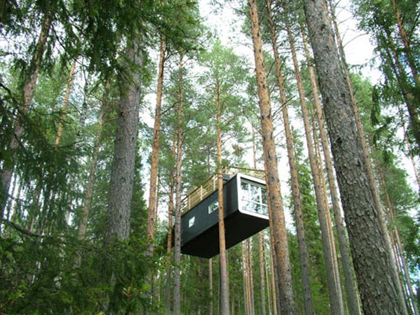 No u jednom gradiću u Švedskoj ovog je ljeta otvorena turistička ponuda koja teško da zadovoljava prestiž ili komfor svjetskih hotelskih lanaca, ali je zbog svoje originalnosti i pristupa fantastično osvježenje i destinacija koju bi, vjerujemo, za bijeg od gradske vreve svatko želio već sutra posjetiti. Treehotel, koji je nalazi u gradiću Harads na istoku Švedske, izuzev prekrasnog prirodnog okruženja nudi ono što mu i samo ime sugerira, hotelski smještaj na drvetu. Gusta šuma usred idiličnog pejzaža poslužila je kao baza za formiranje niza smještajnih jedinica, dizajnerskih kućica na drvetu. Svaka od jedinica ovog jedinstvenog hotela na stablima potpuno je različita, a identična im je samo činjenica da su ovješene o okolna drveća. Za dizajn hotela u krošnjama zaslužni su timovi arhitekata; Tham & Videgård Architects, Inredningsgruppen, Cyrén & Cyrén, SandellSandberg te Marge Architects, a kao inspiracija za koncept hotela poslužio je dokumentarac Jonasa Selberga Augustsena Trädälskaren (The Tree Lover) o trojici ljudi koji se odseljavaju iz grada te u nastojanju da izuče vlastite korijene, zajedno grade kuću na drvetu.