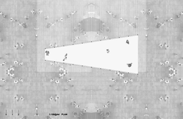 Reflektivna unutrašnjost paviljona potencira nomadski karakter. Ovisno o lokaciji i položaju, GIZMO je uvijek iznova drugačiji: refleksije vanjštine mijenjaju izgled unutrašnjosti. Radikalno.