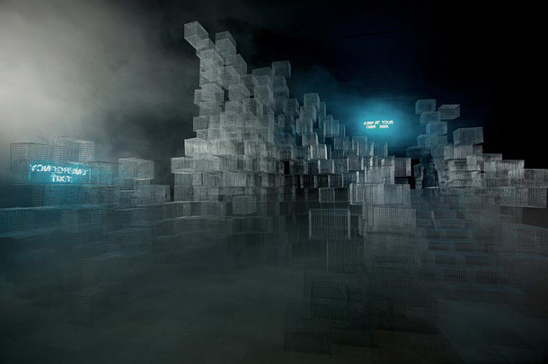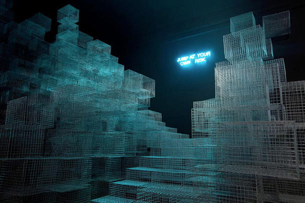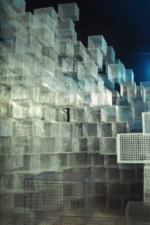 Nadrealna struktura žičane instalacije napravljena je od preko stotinu jednostavnih ptičjih kaveza. Minimalistička iluminacija paviljona, koja sugerira noćni pejzaž, dodatno dematerijalizira čitavu strukturu. Paviljon sadrži objekt, sagrađen od geometrijski raznoliko raspoređenih kaveza te organizacijom sugerira plato, lokaciju drugog segmenta koncepta paviljona, akcije. Prostorno proširenje, gdje je pozicioniran predviđeni plato, na naizgled nesigurnoj visini kod posjetitelja, koji spušta pogled na nepreglednu tamnu prazninu, izaziva iznenađenje, ubrzanje pulsa te poželjnu reakciju skakanja sa strukture u prazninu i beskraj.