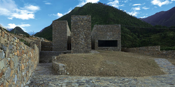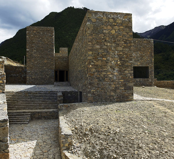 Njihov novi projekt vješto je uklopljen u strme obronke planine, a pravokutne forme kuće koje se izdižu iz okolnog pejzaža djeluju kao segmentni kamenih zidova koji sijeku tamošnji landscape. Tri linearna volumena koja čine zgradu paralelni su jedan s drugim. Struktura centra prati tradicionalne tehnike gradnje lokalnih shigatse majstora, koristeći sirovine iz okolnih regija.