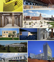 *U smjeru kazaljke na satu: Hotel Lone u Rovinju / Filozofski i učiteljski fakultet u Rijeci / Zgrada HBK u Zagrebu / Objekt studentske prehrane u Rijeci