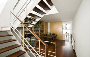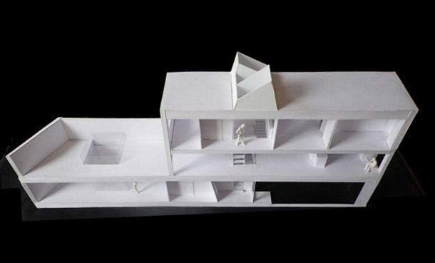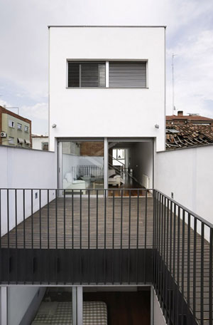 O uobičajenim problemima i kreativnim projektantskim rješenjima na dugim, a uskim parcelama unutar gustih struktura japanskih gradova pisali smo već u nekoliko navrata, a sa sličnim inputima „nezgodne lokacije“, no ovaj put na europskom tlu, u Barceloni, susreli su se arhitekti studija H arquitectes. Lokacija za projektiranje obiteljske kuće “127” za obitelj s troje djece bio je kvart Sabadell u tipičnoj zoni blokova projektiranih za stanovanje radnika poredanih duž ortogonalnih ulica. Širina pojedine stambene jedinice je četiri metra. Neobičnost projekta je svakako raspored prostorija, gdje na prizemlju nisu ustaljeni javni programi najdostupnije etaže kuće, nego je ono rezervirano za roditeljske prostore zbog toga što najmlađe dijete ima već 10 godina, pa je potpuno odvajanje dječjeg i roditeljskog trakta moguće (i poželjno). Dnevni prostori boravka, kuhinje i blagovanja su na prvom katu, nanizani jedan na drugi, prekinuti stubištem koje povezuje etaže. Druga etaža isključivo je namijenjena sadržajima i prostorijama za djecu. Ovakve parcele najčešće postavljaju problem nedovoljne količine dnevnog svjetla za sve dijelove kuće, no na tu otežavajuću okolnost arhitekti su odgovorili rješenjem formiranja dvorišta po tlocrtnoj sredini roditeljskog trakta, a do ostalih dijelova kuće koji nisu na fasadi dopire svjetlost kroz stubišnu vertikalu.