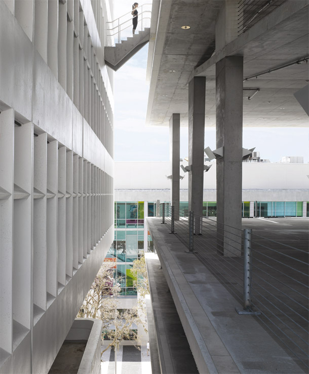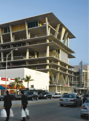 Posljednji rad uspješnog švicarskog arhitektonskog dvojca Herzog & de Meuron, 1111 Lincoln Road u Miamiju, sve je samo ne običan parking. Projekt je plod suradnje sa Robertom Wannetom, iskusnim developerom, zaslužnim za iniciranje i gradnju niza ikoničnih struktura u SAD-u. Njihovo partnerstvo nastavak je Wannetove predanosti u unapređivanju internacionalne prepoznatljivosti Miamija, kao umjetničke, komercijalne i kulturne destinacije 21. stoljeća. 1111 Linclon road predstavlja suradnju poznatih švicarskih majstora, krajobraznih arhitekata te umjetnika i dizajnera kojima je bio cilj stvoriti jedinstven prostor koji spaja šoping, stanovanje, javne prostore te veliko parkiralište. Tako nova građevina Herzoga & de Meurona, za razliku od uobičajenih monofunkcionalnih prometnih zdanja, miješa program unutar objekta na jedan originalan način kakav, naglašavaju arhitekti, još nije viđen. Izuzev programatskog mixa njihov projekt raskošno je arhitektonsko djelo, ekspresivne i zaigrane forme izvedene isključivo u betonu sa segmentima staklene fasade. Naizgled parkirališna zgrada zapravo je ansambl niza elemenata, zanimljive i originalne arhitekture, postojećih kuća švicarskih arhitekata u potpuno drugačijem kontekstu, umjetnosti, brutalističkog izgleda te uokvirenog pejzaža, formiranih među izmaknutim pločama. Monumentalna betonska građevina, koju opisuju kao mišić bez kože, sastoji se od šest parkirališnih etaža različitih visina, prozračnih te otvorenih ka izvanrednim vizurama grada.