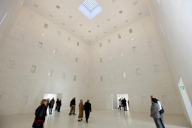 Interijer je dakako, posve bijel, a na stropu je smješten otvor, svjetionik koji i onima slabe imaginacije daje implikacije nadzemaljskog. Odsustvo stolica i namještaja još jednom glorificira iznimnu fascinaciju prazninom.