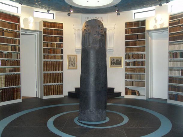 U centru pak, neočekivan detalj- rotunda s replikom Hamurabijeva zakonika i pocinčanim stropom, u krajnje babilonskoj maniri.Kako objašnjava vlasnik zbirke, riječ je o fizičkom pokušaju da se reprezentira mentalni red koji postoji u maloj i privatnoj knjižnici. Sve knjige postavljene su na način da su gotovo u jednom pogledu dostupne posjetitelju, složene tako da njihov kontekst, odnosno susjedne knjige o njima samima najviše govore. Znanje ovdje ipak nije odvojeno, individualno, već je predstavljeno kao kulturna povijest.