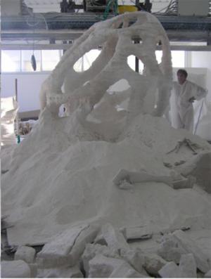Koncept D_shape primijenjen je na gradnji sjenice nazvane ”Radiolaria”, koju je projektirao arhitekt Andrea Morgante (Future Systems). To je prva primjena klasične stereolitografije u građevinskoj industriji i predstavlja ogroman napredak kako za proizvod tako i za proces. ”Radiolaria” je dva metra visoka monolitna konstrukcija od pješčenjaka ”isprintana” u slojevima pijeska od 10 do 20mm koji su povezani anorganskim vezivnim sredstvom. Cijena materijala ugrađenog u sjenicu iznosi samo 200 eura.