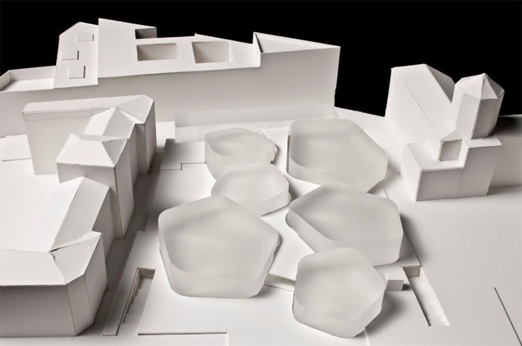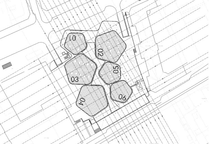Prostor tržnice podijeljen je na 6 peterokutnih filetiranih formi, međusobno povezanih natkrivenim prostorima. Svaki od šest elemenata različite je visine, tlocrtnih dimenzija i oblika, referirajući se na okolnu izgradnju, a sadržavat će različiti broj štandova ili trgovina. Vanjska obloga fasade izvedena je od glatkih, prozirnih polikarbonatnih elemenata te tako omogućava prodor svjetla u prostore tržnice, da bi se navečer zgrada pretvorila u niz svjetlećih elemenata, koji osvjetljavaju okolni javni prostor trga. Kada se radovi na okolnim projektima niza javnih građevina završe, ovi svjetleći cilindri, koji su dizajnirani upravo s tom posebnošću, ovisno o potrebi bit će premješteni na neku drugu madridsku lokaciju.