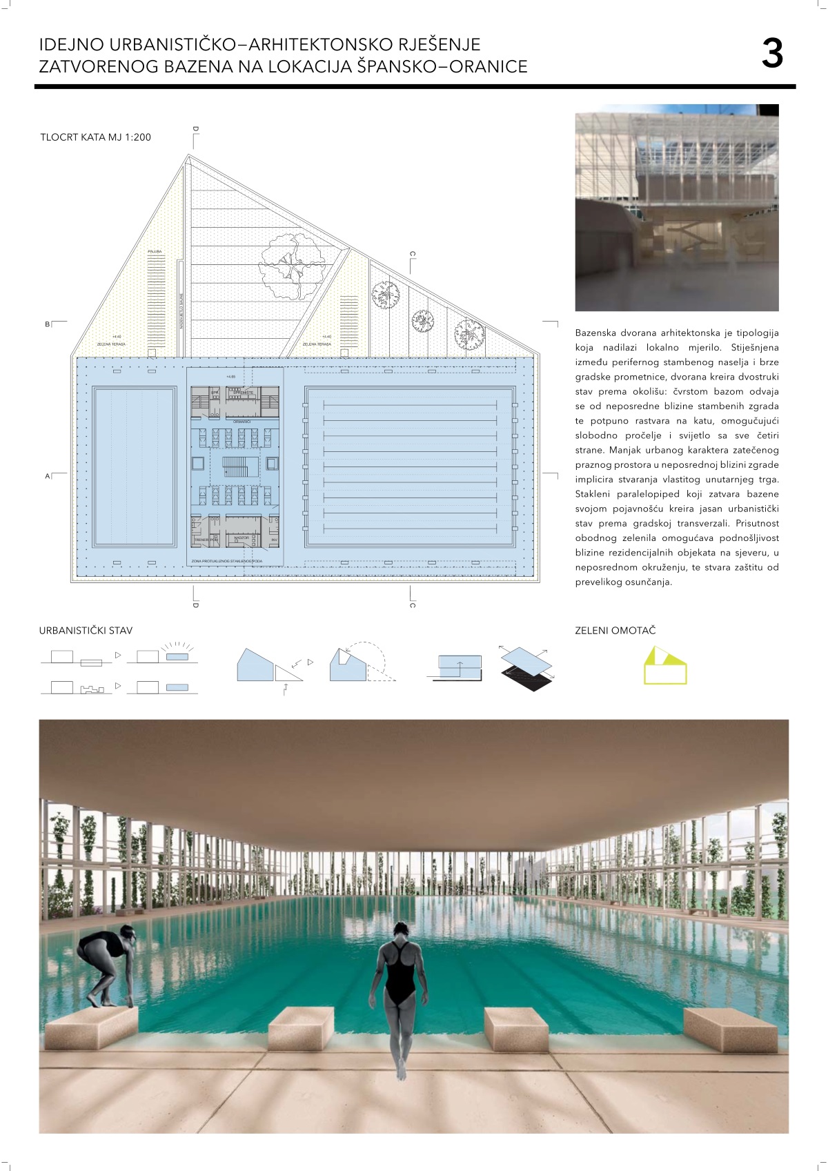 PREDMET NATJEČAJA je izrada idejnog urbanističko-arhitektonskog rješenja zatvorenog bazena na lokaciji Špansko-Oranice u Zagrebu.