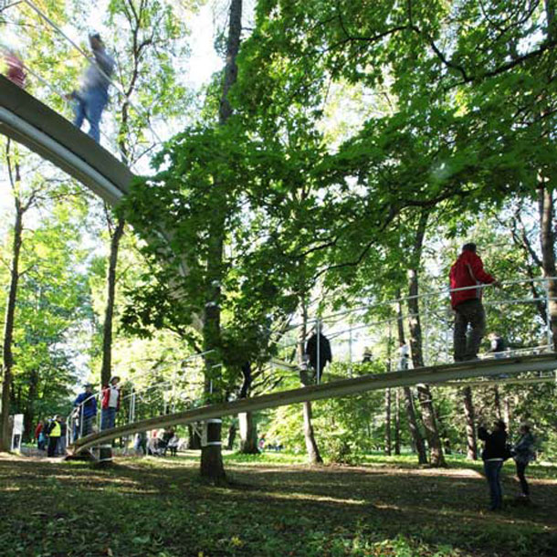 Jedna od inspirativnijih instalacija u ovogodnišnjoj europskoj prijestolnici kulture, estonskom glavnom gradu Tallinu, svakako je ova šumska šetnica “ni na nebu, ni na zemlji”.