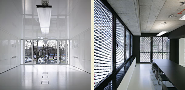 Koncept unutrašnje organizacije – preložen je model ‘radnih kapsula’ koje se umeću između konstruktivnog skeleta. S obzirom na limitirane prostorne uvjete zatečenog projekta (relativno mala konstruktivna visina, plitka dubina) stranice radnih prostora visoko su reflektivne te se perceptivno doima prostor znatno veći. U radnim kapsulama organizirane su grupe od dva do šest zaposlenika. Predloženi sistem radnih prostora fluidan je, nema pregrada prema prostorima komunikacija te predstavlja novi tip uredskog prostora – između sačastih ćelija i potpuno otvorenog principa.