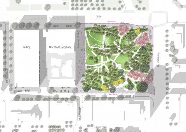 Projekt Soundscape studija West 8 pobjednički je rad za Lincoln Park u Miami Beachu, izabran prije dvije godine, čija je realizacija netom završena. Radi se o zoni koja se nalazi uz „New World Symphony Campus“, nedavno sagrađeno zdanje američkog arhitekta Franka Gehryja. Površina obuhvata malo je veća od jednog hektara, a park bi svojim karakterom i izgledom trebao postati najvažnija velika zelena javna površina u Miamiju.