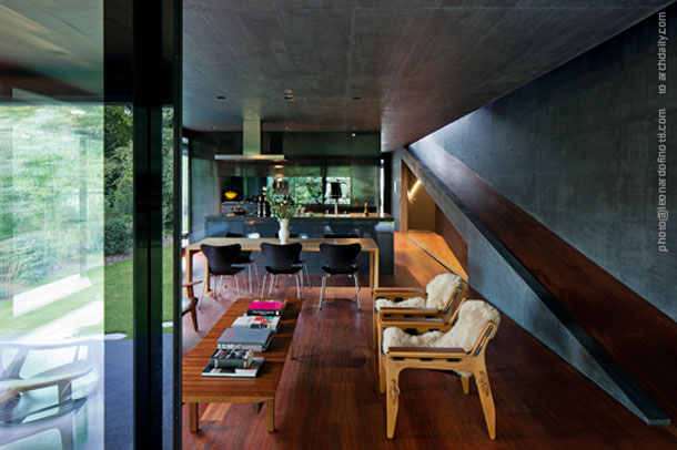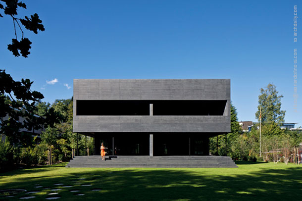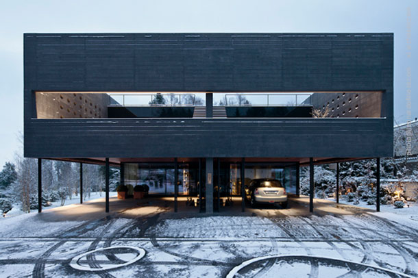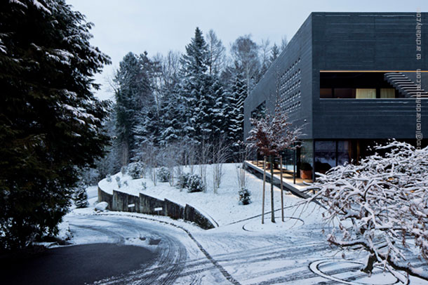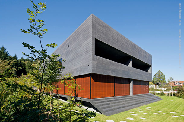 Životna želja svakog arhitekta je projektirati kuću u potpunosti po svojim pravilima, bez sugestija investitora i klijenata, na način da ona bude i manifest i osobni stroj za življenje. Upravo se takva jedna kuća nalazi na obali švicarskog jezera Luzern, u istoimenom gradu. Riječ je o dvojnoj kući, čija pojavnost odmah sugerira tipologiiju Le Corbusierovih vila, no to nije slučajno, dapače Le Corbusier je bio točka promišljanja ove kuće. Arhitekti Remo Halter i Thomas Lussi iz ureda Halter+Lussi autori su projekta obiteljske kuće za Haltera i njegovu suprugu, te još jedan bračni par. Ugledanje na Le Corbusiera vidljivo je na prvi pogled: manje-više otvoreno prizemlje, pilotisi, slobodna fasada, krovna terasa, formiraju kuću smještenu na pitoresknu čistinu u šumi kestena.