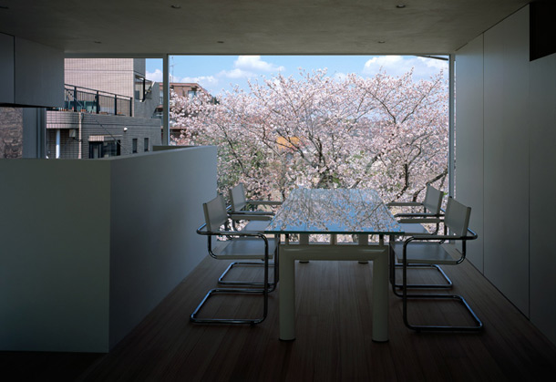 Na polju projektiranja obiteljskih kuća iz Japana gotovo uvijek dolaze smjela i sasvim drugačija rješenja. Jedna od zanimljivijih realizacija arhitektonske prakse A.L.X. iz Tokya projekt je „On the cherry blossom“, za obiteljsku kuću u istom gradu, čiji su oblik generirale dvije rascvjetane trešnje na nasuprotnoj strani ulice. Šarmantna dominantnost neobično lijepog drva trešnje, u ovako gustoj urbanoj strukturi jedne od bezbroj rezidencijalnih ulica japanskog metropolisa, bila je elementarni inicijator pri osmišljavanju koncepta.