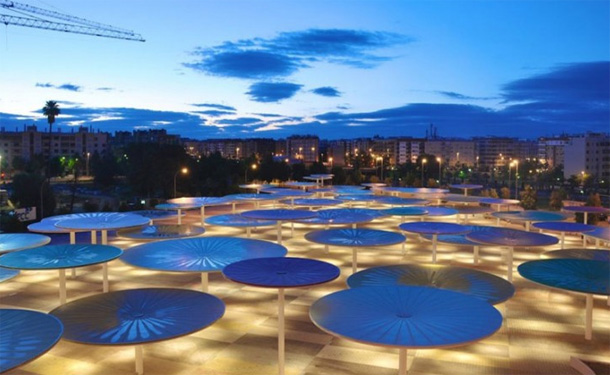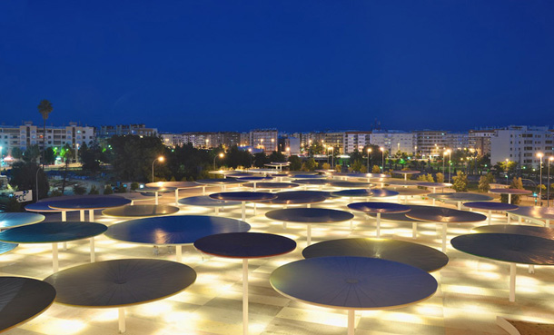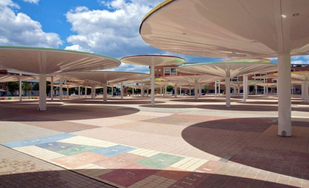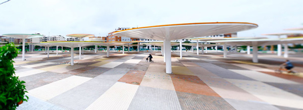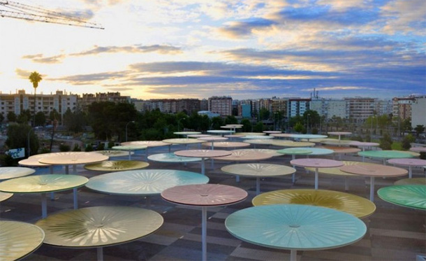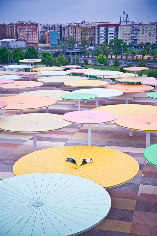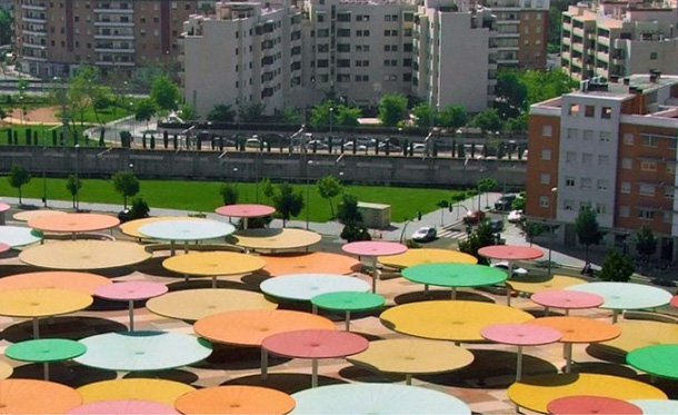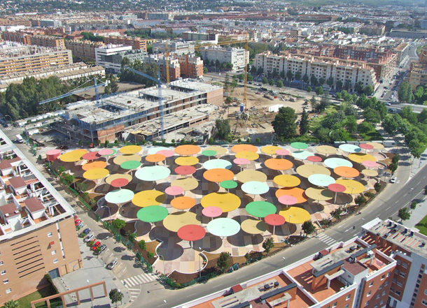 Slika otvorenih javnih gradskih prostora španjolske Cordobe odnedavna se uvelike promijenila, zahvaljujući arhitektima iz studija ParadesPino Arquitectos zaslužnima za hvaljenu prostornu instalaciju podignutu u centru grada. Arhitekti su osmislili unikatan trg, jedinstven prostor prekriven s približno stotinjak različitih suncobrana, namijenjen za okupljanje, zabavu te lokalne komercijalne djelatnosti. Ovaj šareni i drugačiji trg stvorio je novi fokus okolnih kvartova, povezujući također centralnu željezničku stanicu sa susjednim urbanim zonama. Raznobojni suncobrani protežu se na 12.000 metara kvadratnih prostranog trga, i ne samo da stvaraju golem zasjenjeni prostor idealan za dnevnu siestu, već jednako interesantan noću.