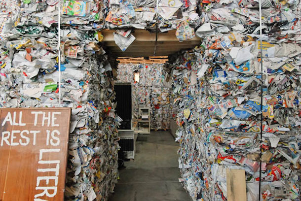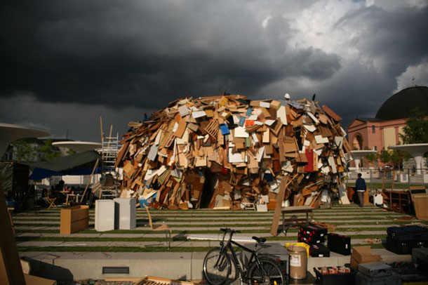 Kako bi sveli utrošak energije u našim radovima na minimum, odlučili smo koristiti reciklirane materijale za naše privremene konstrukcije. Drugi aspekt je taj da korištenje smeća (odbačenih materijala) za nas ima neka poetična svojstva. Možete raditi umjetničke kolaže, pretpostavljajući nove tehnike građenja. Sa smećem uvijek baratate na metaforičkoj razini.
