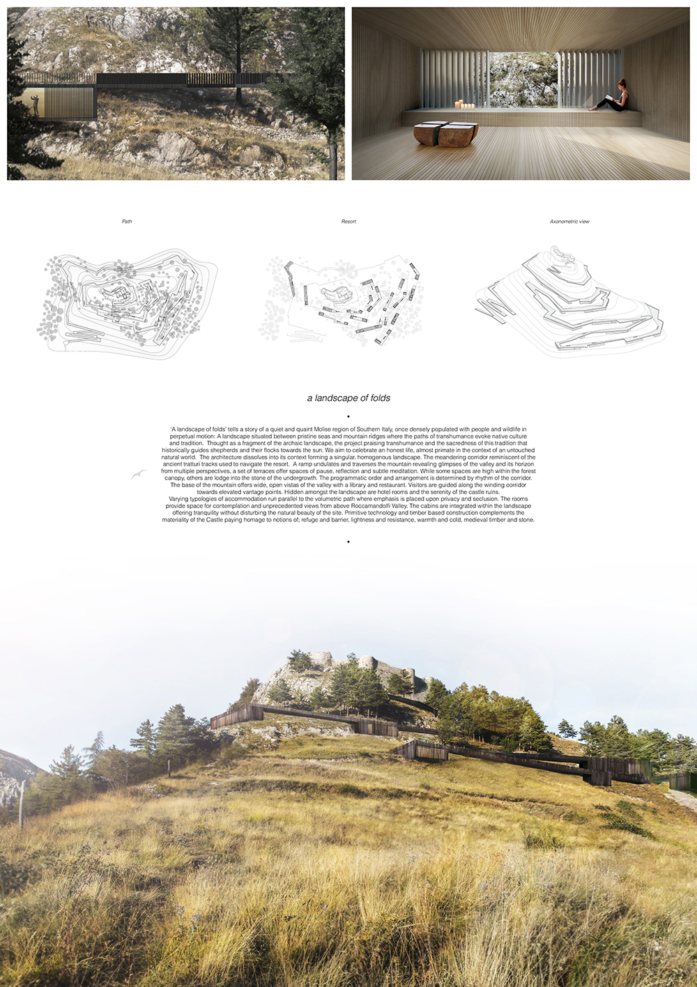 Cilj ovog natječaja bio je prenamijeniti srednjovjekovnu utvrdu u ekskluzivne turističke objekte, usklađujući arhitekturu s prirodom kako bi se povećala povijesna i okolišna vrijednost lokacije Roccamandolfi u južnoj Italiji.