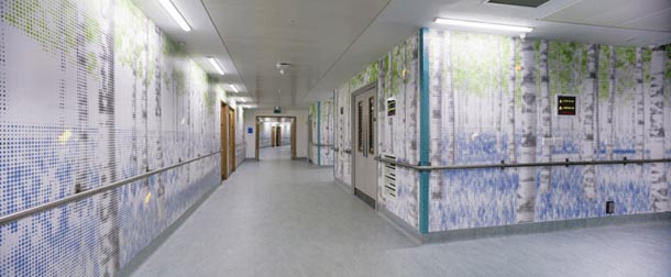 Interaktivna instalacija, dizajnirana prije svega kako bi odvratila pažnju od onog što neminovno slijedi, sastoji se od led panela integriranih u zid i jednostavne tapete, koja se pruža s obje strane 50 metara dugačkog bolničkog hodnika. Senzori postavljeni u stropu detektiraju pokret i aktiviraju prikaz gorućih silueta plahih zečeva, jelena koji meandriraju između stabala te ostalih šumskih životinjica.