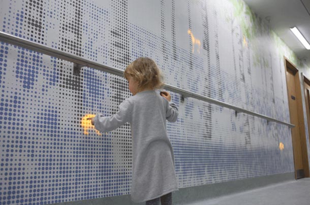 The Nature Trail projekt je dizajnera rasvjete Jasona Brugesa koji je inače bezličnu rutu od bolničkog kreveta do operacijske sale preoblikovao u neku vrstu pustolovine u kojoj, uz male bolesnike, sudjeluju i iluminirajuće životinje koje se neočekivano pojavljuju, tajnovito provlače i nestaju iza stabala.
