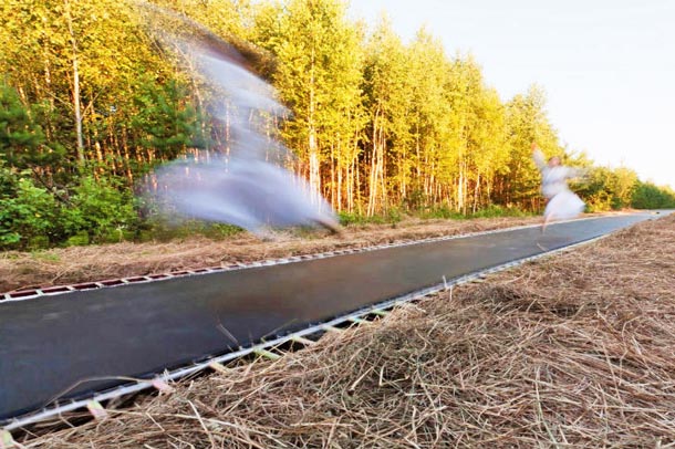 U sklopu festivala Archostoyanie 2012 u Nikola-Lenivetsu u Rusiji, kreativni tim Salto na rub šumarka postavio je neobičnu instalaciju imena Fast Track. Radi se, naime, o gigantskom trampolinu – odskočnoj stazi dužine gotovo cijelog jednog gradskog bloka (preko 50m), postavljenoj u razini tla. Fast Track integralni je dio parkovne infrastrukture, istodobno i umjetnička instalacija i prometni trak, koja je, očekivano, izazvala veliki interes posjetitelja festivala.