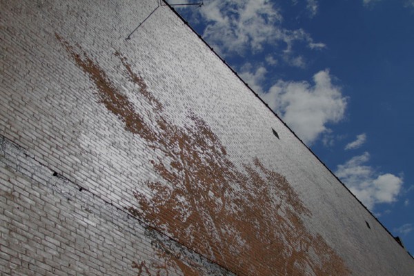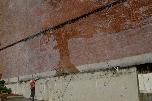 Ako gledate kroz prozor i pitate se što vam kiša može donijeti zanimljivo, imamo nešto baš za vas. Naime, mural stabla hrasta kao simbola američke nezavisnosti pojavljuje se i nestaje upravo s kišom na fasadi napuštene sinagoge u Connecticutu. Mural je djelo Adam Nilewicza i vidljiv je samo kada se opeka natopi vodom. Njegova pojavnost je rezultat tretiranja cijelog okolnog područja opeke koja graniči s obrisom hrasta, a nastao je tako da je na fasadu postavljena golema količina gumenih markica, na točno promišljenim lokacijama da bi u konačnosti oformila hrasta, a potom je cijela fasada tretirana specijalnim sprejem. Zanimljivo je kako autor nije računao isključivo i samo na kišu, već je predvidio i poseban sprinkler sistem, koji se sastoji od dvije obične prskalice za travnjake, a koji se po potrebi pali u željenom tempu kako bi udahnuo život ovom stabalcu od nekih 10-ak metara veličine.
