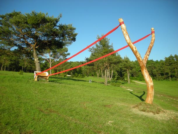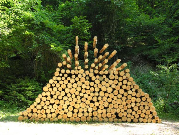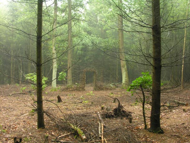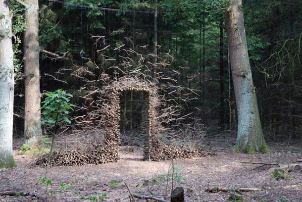Njemačka umjetnica i dizajnerica Cornelia Konrads svoj atelje preselila je u javne prostore, napose šumske proplanke gdje se često poigra s elementima koje tamo zatekne – kamenčićima, lišćem, snježnim pahuljama, drvenim trupcima, odlomljenim granama ili zaboravljenim ogradama koje stavlja u nove, često bizarne, prostorne odnose.