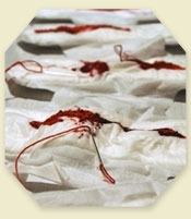 Jedan od cenzuriranih radova jest onaj pulske kiparice Roberte Weissman Nagy nazvan ”Unutarnja ljepota” (”Inner Beauty”), koji se sastoji od higijenskih uložaka na kojima je autorica crvenim koncem različitih nijansi ”izvezla” menstrualnu krv. Drugi je rad zagrebačke umjetnice Sonje Hržina Majstorović »Žena – domaćica – kurva – svetica«, koji je bio obješen u sredini sveučilišnog hola, a prikazuje veliku ruku napravljenu od ružičastog muselina, punjenu pjenom i kuhinjskim posuđem te ukrašenu ružičastim grudnjakom.