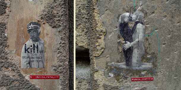 U jednom je trenutku umjetnik odlučio raskinuti s prethodnim djelima, nazivajući se Pume34 i stvarajući novu seriju uličnih intervencija. Sada su ulice preuzeli motivi iz skate kulture i rasteri u svim svojim modifikacijama. Dekonstrukcije identiteta su se zaredale, tu su još bili John Croat, Tar, ali su svi, unatoč drugačijem vizualnom kodu, imali sličan modus djelovanja. Kod Pume34 ex Filjija, pseudonim nije imao samo efemernu ulogu, već ime postaje svijet za sebe; samostalna projekcija težnji za nemogućnosti uokviravanja i nejedinstvenosti identiteta, neuhvatljivosti i ne podrivanju konvencijama.