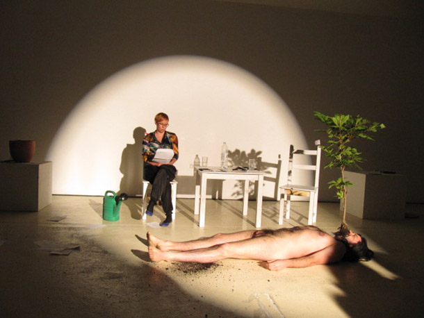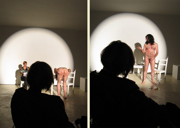 Idući performans, Razgovor s umjetnikom, nastavio se u istom prostoru. Razgovor s Kristianom Al Droubijem vodila je Natasha Kadin, a pitanja su se temeljila na tekstu dr. Bojane Kunst, Bespomoćnost radikalne potrošnje iz 2009. Performans o političkoj bespomoćnosti radikalne umjetničke prakse, o imperativu užitka u postindustrijskom kapitalizmu, o nemogućnosti subjektivizacije i impotenciji komunikacije razotkriva motive, razloge, ciljeve i pozadinu kreativnog rada umjetnika. Al Droubi kao umjetnik u ovom razgovoru svoje stavove brani ne samo verbalno već i cijelim tijelom.