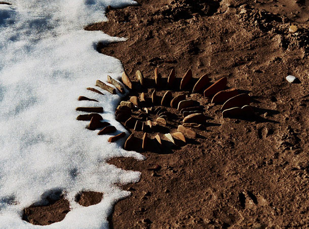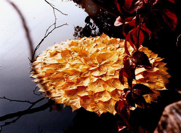 Komadi leda pretvoreni u niz elemenata, lišće zašiveno u jednu zajedničku formu i pretvoreno u splav na potočiću, kolaži od usputnih biljaka fiksirani kao ukrasi na sasvim drugoj vrsti – opisivati ova prirodna (ne)djela uopće nije zahvalan posao. Kad kapljice vode zamijene kist, a travke pod nogama paletu boja, sve ono što inače zovemo umjetnošću u trenu se pretvori u još sitniji dio svemira.
