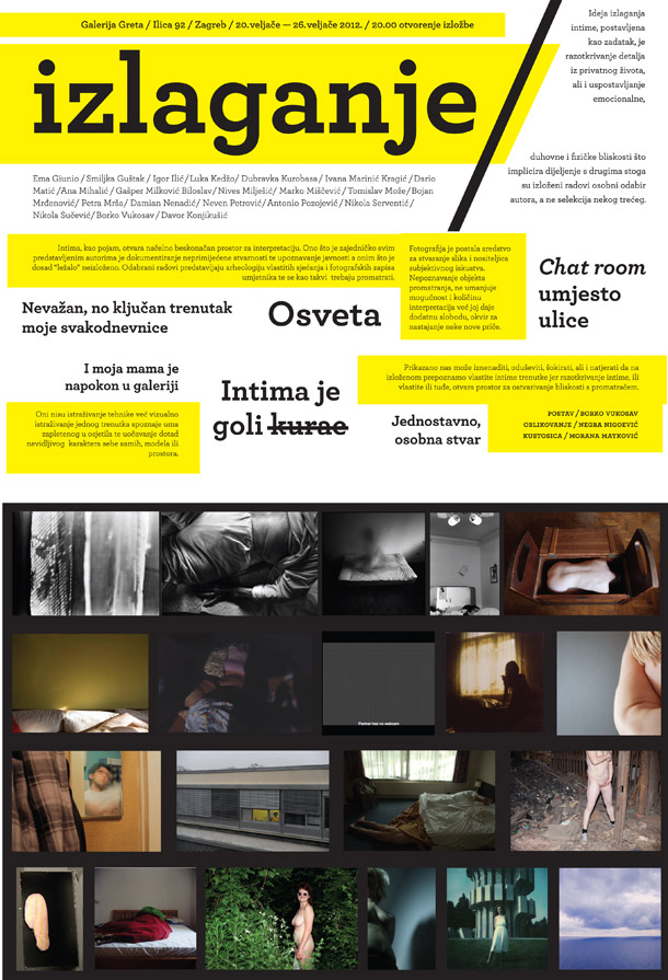 Ideja izlaganja intime pred njih je bila postavljena kao zadatak. Ona, kao razotkrivanje detalja iz privatnog života, ali i uspostavljanje emocionalne, duhovne i fizičke bliskosti, implicira dijeljenje s drugima stoga su izloženi radovi osobni odabir autora, a ne selekcija nekog trećeg. Subjekt fotografiranja izložbom postaje objekt izlaganja.
