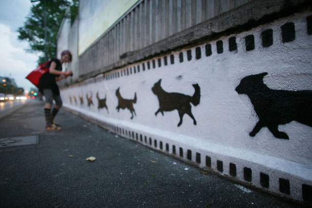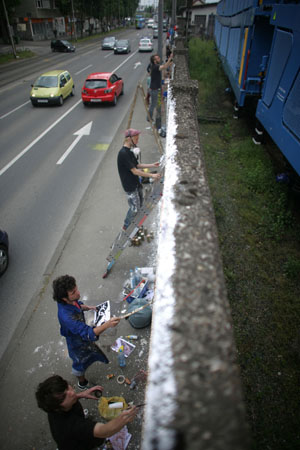 Muzej ulične umjetnosti sa svojim prvim projektom oslikavanja zida u Branimirovoj ulici čitavog je tjedna intrigirao javnost, zabavljao prolaznike i vjerojatno „okupirao“ vaše facebook profile sa vijestima i fotografijama direktno s mjesta događaja. Na desetci mladih kreativaca od ponedjeljka su, prekidani povremenim prolomima oblaka i ne toliko sjajno prognozom, na južnoj strani stare Branimirove ulice u stvarnost pretakali ideje i slike izabrane na MUU-ovom natječaju.