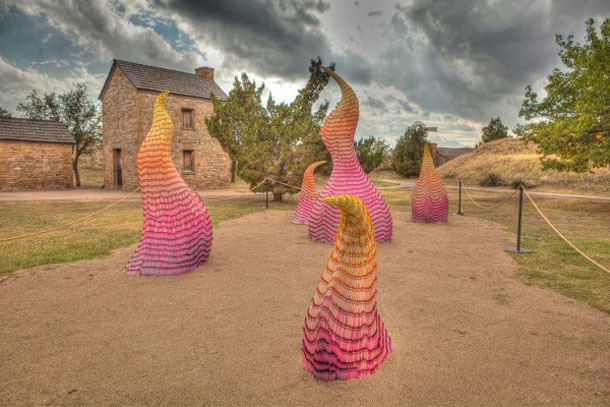 Poprilično toplije boje, pozitivnije ime instalacija, ali i drugačija priroda materijala od kojih su napravljeni, karakteristike su najnovijeg niza skulptura Herba Williamsa. Radi se o skulpturi Unwanted Visitor: Portrait of Wildfire, sastavljenoj od pet skulptura, pet plamičaka vatre koji izlaze iz zemlje, instalaciji koja je napravljena od različito nijansiranih pastelnih bojica. Skulptura koja je nedavno za posjet javnosti otvorena na National Ranching Heritage Centeru na Texas Tech sveučilištu u Lubbocku, broji nekoliko tisuća uglavnom narančastih, žutih te ružičastih pastelnih bojica. Pastelni plamičci trebali bi aktualizirati nedavne požare koji su harali državom Teksas, a zbog prirode materijala te snažnog teksaškog sunca, kroz naredno vrijeme skulpture bi trebale podlijeći zubu atmosferilija te se početi rastapati. Više o radu ovog umjetnika pogledajte ovdje.