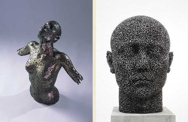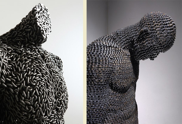 Korejski umjetnik Yeong-Deok Seo autor je impozantnih figurativnih skulptura za koje bi se moglo reći da su metalne, no metalni su elementi u službu umjetnosti dovedeni iz sasvim drugog konteksta. Seo naime, svoje biste i obezglavljene statue ljudi radi od lanaca od bicikala i industrijskih čeličnih lanaca. Set skulptura iz ove serije autor je nazvao Infekcija- Tjeskoba, Infekcija – Ego te Ovisnik. Kako ističe umjetnik, sama imena radova te hladnoća i industrijski karakter materijala od kojih su formirani zajedno sugeriraju očaj, nelagodu i bolest, kao metafore stanja suvremenog čovječanstva. O ostalim radovima korejskog umjetnika pogledajte ovdje.