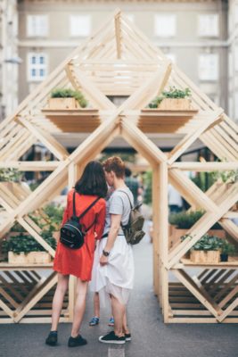 Od privremenih prostornih intervencija zasigurno će najviše pažnje privlačiti Baustella, zelena instalacija namijenjena druženju i odmoru, a bit će izgrađena od čeličnih građevinskih skela te prekrivena biljno-cvjetnim pokrovom.
