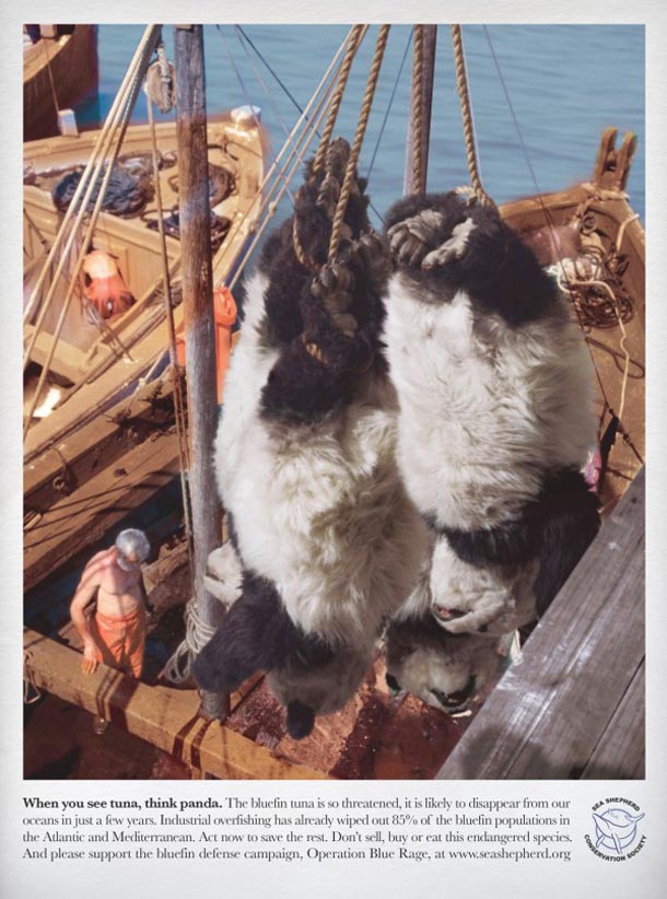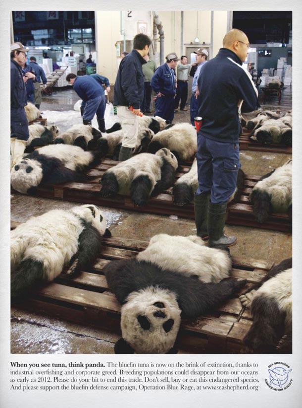 Poprilično nevjerojatan, ali i zastrašujući scenarij borci za očuvanje prirode iz Seasheperda pristali su pokazati na sasvim bizaran, ali upečatljiv način. Njihovu kampanju, koja elaborira gore navedene činjenice, osmislio je kreativni tim iz singapurške agencije Ogilvy & Mather. Kao nositelja kampanje uzeli su pandu kao životinju koja je u široj društvenoj percepciji prepoznatljiv označitelj izumiruće vrste, te je postavili unutar scenarija prikladnih i karakterističnih za izlov i preradu tune. Povlačeći tako snažnu paralelu, fotografije sugeriraju koliko je situacija pretjeranog izlova tune alarmanta.