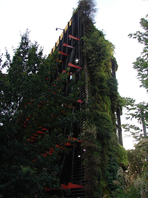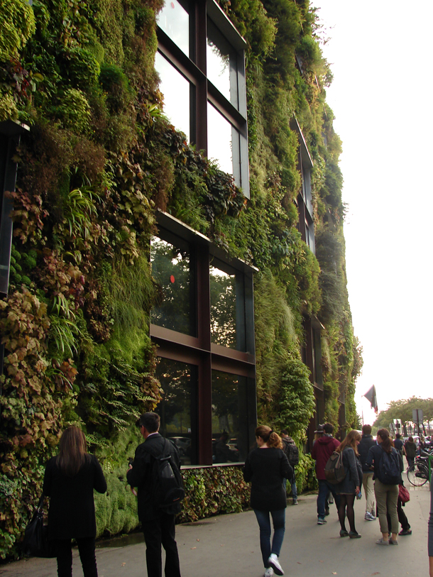 Relativno nedavno izgrađen, etnografski muzej Quai Branly arhitekta Jeana Nouvela s bogatom zbirkom primitivnih umjetnosti iz Afrike, Oceanije, Azije i Amerike, gustoj gradskoj prometnici i rijeci Seini suprotstavlja se 12 metara visokim zelenim zidom koji je ujedno jedno od najimpozantnijih djela francuskog botaničara Patricka Blanca. Inspiriran biljnim zajednicama koje u prirodi uspijevaju na vlažnim kamenim podlogama, Blanc je osmislio ingeniozan sistem tzv. Le Mur Végétal koji oponaša prirodno stanište biljaka i to na zidovima zgrada – kako unutrašnjim, tako i vanjskim; a ovaj vertikalni pokrov bogate bioraznolikosti dizajnirao je upravo kako bi odrazio kulturni diverzitet muzejskog postava.