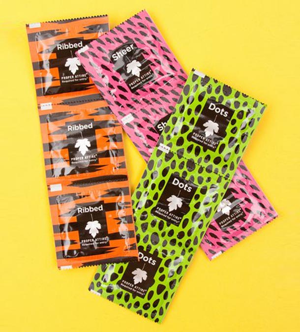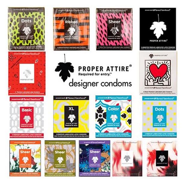 Dvanaest glamuroznih modela koje su dizajnirala poznata imena iz svijeta mode sada vam omogućuje da se osjećate ugodno i šik prilikom kupnje kondoma. Alexander Wang, Brian Reyes, Charlotte Ronson, Jeremy Scott, Opening Ceremony, Yigal Azrouël… renomirana su dizajnerska imena, ekipa koja se upustila u novi i zanimljivi projekt pod geslom Proper attire®. Tako su kondomi gotovo preko noći postali zabavan način na koji možete zaštititi sebe i partnera i još to napraviti sa stilom! Svaki dizajner dobio je svoju liniju kondoma i dao mu jedinstveni pečat. Kupnjom Proper attire® kondoma ne štitite samo svoje zdravlje već i potpomažete humanitarnu akciju. Naime, dio prihoda odlazi u korist organizacije za planiranje roditeljstva.
