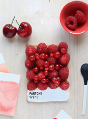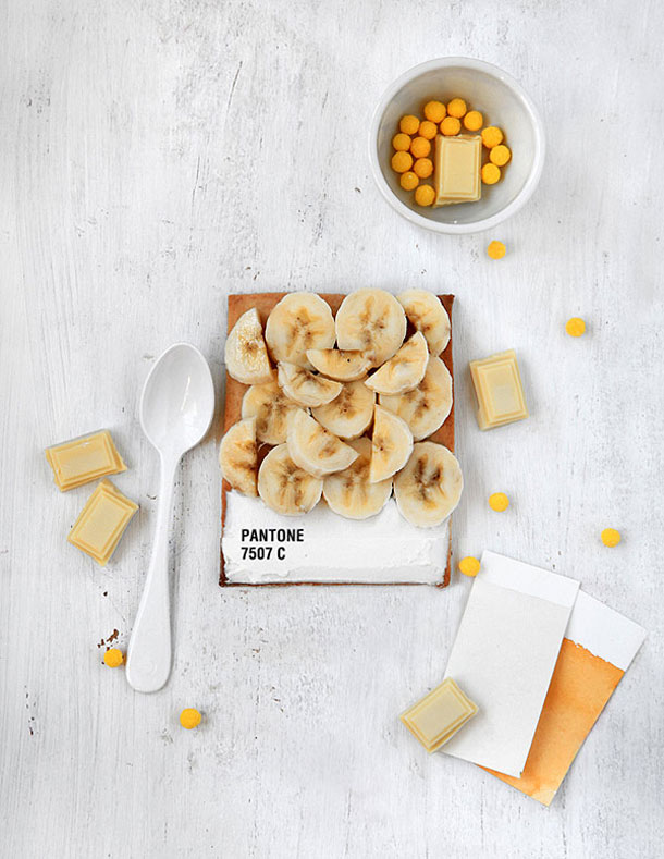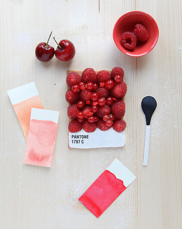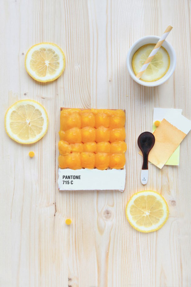 Šesto izdanje kulinarskog časopisa Fricote donijelo je recepte francuske kuharice Emilie de Griottes koja se bavi dizajnom hrane. Kako nema dizajna bez Pantonea, pa bilo riječi i o kulinarskom dizajnu, kuharica je ovom prilikom Pantone pločice izradila u obliku voćne pite. Na podlogu pravokutnog oblika od prhkog tijesta naslagala je bobičasto voće, mrkve, limune, banane, krastavce, bombone ili neku drugu hranu da bi dobila željenu boju, dno podloge premazala je bijelom glazurom s napisanim kodom boje te je tako nastala slatka i ukusna Pantone pločica.