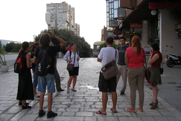 Naziv radionice “Privatna stvar – javni prostor” označava raspon dviju disparatnih geografija prostora. Prva geografija, prvi diskurs prema kojem se ova radionica antitetički postavila, jest onaj da se javni prostori doista prevode u nečiju privatnu stvar, bilo kao vlasništvo bilo kao zabrana drugim građanima da prigovore nekoj praksi (ma kako koruptivnoj, protuzakonitoj) baš zbog toga što se to njih “ne tiče”. Riječ je o procesima koji se nameću kao strategija odozgo ili s pozicija kojima “obični” građani, oni “dolje”, ne mogu upravljati. Drugi pol raspona unutar kojeg smo se kretali su upravo taktike kojima svatko može činiti i uistinu čini javni prostor grada. Nesvjesni odabir jedne ulice kojom ćemo proći nauštrb druge također iscrtava određenu geografiju grada. Zato smo se u okviru radionice prošetali Ulicom Ruđera Boškovića, tj. Splitom 3, koja je u proteklih dvadeset godina proživjela znatno strategijsko i taktičko redizajniranje. Izvrstan arhitektonski projekt Splita 3, o kojem je govorio Vladimir Tatomir iz udruge Kontraakcija, objedinio je urbane potrebe za stambeno-poslovnim kompleksom i civilne potrebe stanovnika, tako da i danas taj kvart živi svojevrsno urbano zajedništvo. Prije dolaska shopping centara, Ulica Ruđera Boškovića pupala je raznim dućanima i bila šetačka transverzala između Ulice Matice Hrvatske i Poljičke ceste. Ako pođemo od toga da je čin hodanja, isto kao i čin govorenja, svojevrstan performans koji se ne samo upisuje u urbani scenarij, nego on taj scenarij i čini, proizvodi, onda Boškovićeva svakako ne nestaje s povlačenjem dućana i kafića u prometnija područja. Ono što ostaje su šetači (prolaznici) i stanovnici Splita 3. Danas prazna Boškovićeva (prvenstveno njezin gornji dio) itekako ima svoje urbane performere, ljude koji privatnim taktikama kreiraju taj prostor, od toga da budnim okom motre zbivanja u ulici, do toga da samoinicijativno preuzimaju brigu za zaboravljeno zelenilo u uličnim „pitarima“. Tu živost Boškovićeve je, uostalom, pokazao i performans Diane Magdić (udruga Teserakt), nazvan Treći korijen iz minus Split, održan ove godine u sklopu Splitskog ljeta.