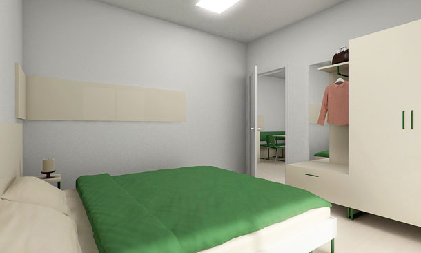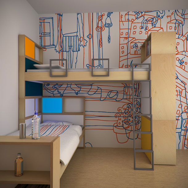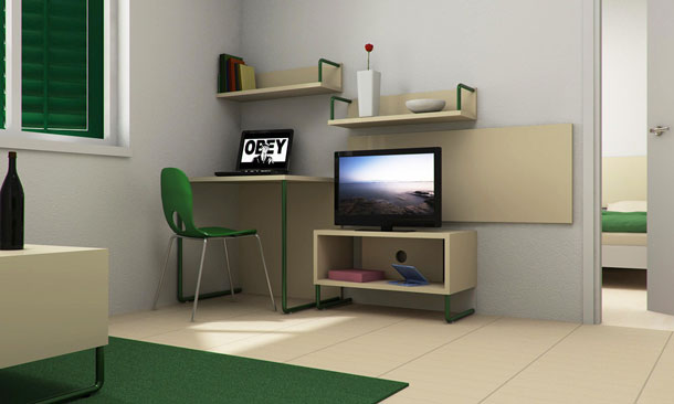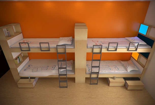 Namještaj za hostele osmišljen je kao modularni sustav koji odgovara potrebi vlasnika i korisnika da kreiraju prostor i prilagođavaju elemente namještaja gabaritima kojima raspolažu. Posebno je zanimljiva integracija dijelova za odlaganje i spavanje, koja omogućuje znatnu uštedu prostora i olakšava odlaganje stvari. Fleksibilnost sustava ostavlja mjesta za nadogradnju, rastavljanje i dodavanje drugih elemenata kako bi se osigurala mogućnost prilagodbe i promjene, vrlo svojstvene hostelima, a također dopušta individualizaciju prostora pomoću dopunske opreme kao što su police, vješalice, podnožja, ormari i svjetiljke.