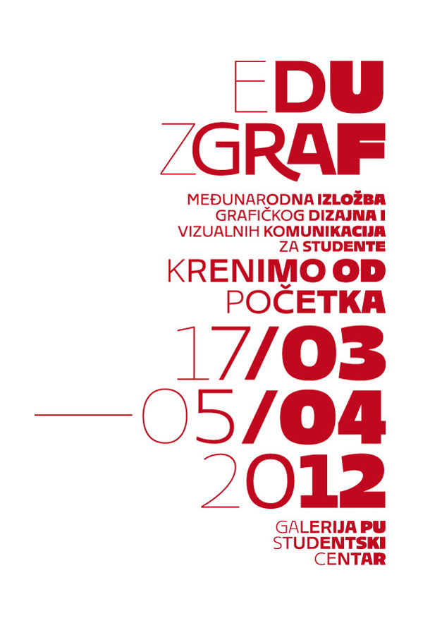 EduZgraf poziva sve zainteresirane da se prijave na natječaj za sudjelovanje na međunarodnoj studentskoj izložbi naziva Krenimo od početka. Poziv je upućen svim nacionalnim i internacionalnim studentima i studenticama koji se unutar svojih studijskih grupa bave grafičkim dizajnom i vizualnim komunikacijama.