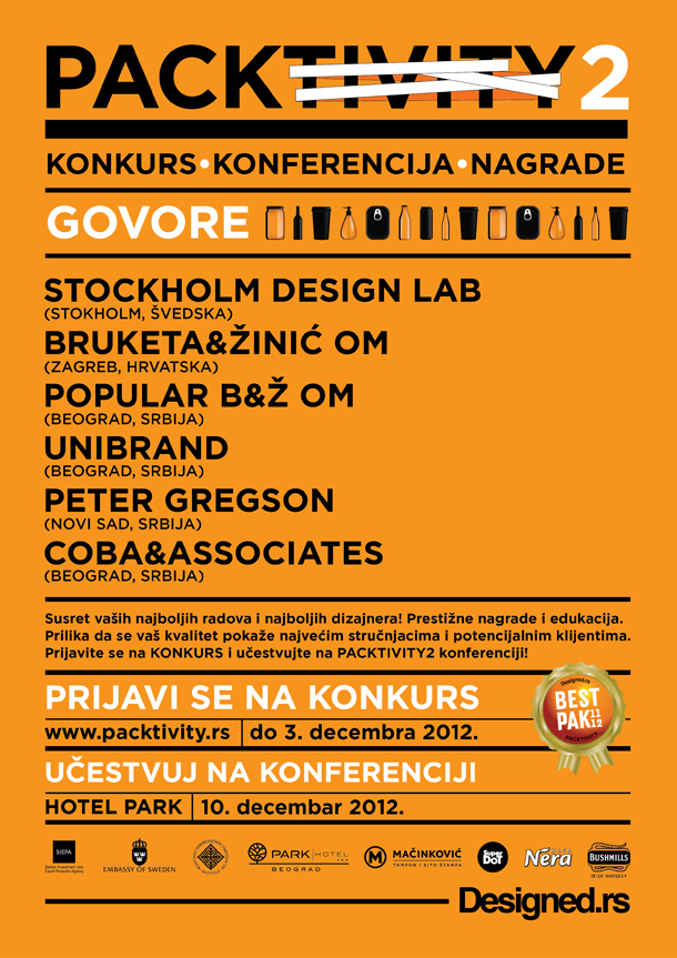 PACKTIVITY2 prvi je Natječaj za najbolji dizajn ambalaže u Srbiji za 2011/12 u organizaciji “Srpske dizajn platforme“ – Designed.rs kao najrelevantnijeg i najposjećenijeg srpskog portala o dizajnu. Natječaj je otvoren od 13. studenog do 3. prosinca 2012. godine, a međunarodni žiri, sastavljen od vrhunskih domaćih i internacionalnih stručnjaka, odabrat će najbolji dizajn ambalaže u Srbiji za 2011/12.
