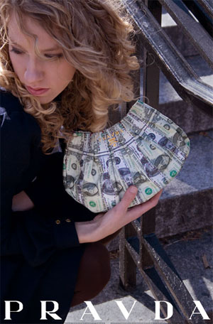 Mlada dizajnerica Lauren Tickle se dosjetila takvog koncepta i prezentirala ga ovogodišnjem njujorškom Tjednu dizajna. Propitujući i ironizirajući potrošnju kroz svoj projekt Value Exploration, maksimalno je banalizirala fetišizam potrošnje kroz ogrlicu, broš i žensku torbicu-delikatno izrađene od novčanica dolara. Riječ je o dodacima koji transformiraju mukotrpno zarađen novac u ultimativni prikaz bogatstva. Dizajnerica se pita zašto zelimo prezentirati vlastito bogatstvo i u skladu sa time, pokušava maksimalno ogoliti stvarnu ekonomsku vrijednost novca. Predstavlja novo značenje gdje novac postaje samo dekorativni papir i manipulirani grafički dizajn.