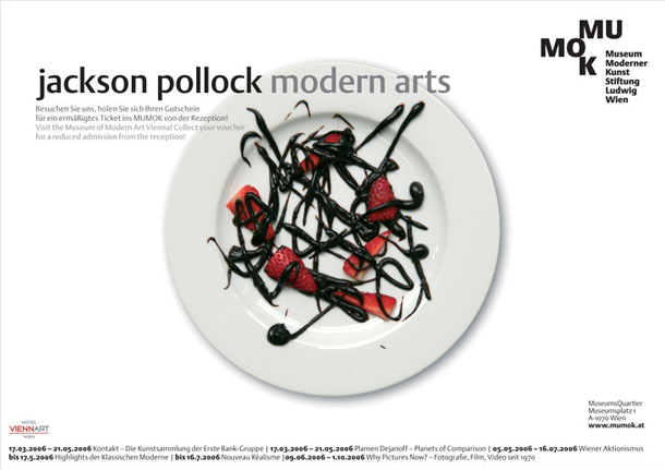Kako povezati hranu i umjetnost, osobito ako je riječ o propagandi restorana unutar muzeja? Kvaliteta hrane sigurno neće biti presudna da uđete u bečki Mumok Museum of Modern Art, već vjerojatnije neka zanimljiva izložba. No kako bi posjetitelje zadržali koncentrirane na umjetnost, čak i dok jedu, „u ponudi“ muzejskog restorana ove bečke umjetničke institucije odnedavno su i inovativni podmetači za tanjure dizajnirani isključivo za ovaj restoran te određene hotele. Erwin Bauer iz ureda Bauer Concept and Design, dizajnirao je seriju inteligentnih, konceptualnih i nadasve funkcionalnih podmetača zajedno sa direktorima fotografije Janto Lenherrom i Michaelom Stoblom. Podmetači su 2009. dobili zlatnu medalju na European Design Awards u mješovitoj kategoriji. Svaki dizajn je inspiriran određenim djelom ili opusom poznatih umjetnika kao određenim jelom koje je potom fotografirano. Stoga, ako poštujete Nitscha i bečke akcioniste, za vas je šumsko voće sa šlagom idealan odabir podmetača. Ako više preferirate Christov empaquetage, onda su za vas krumpiri u foliji. Dobar tek!