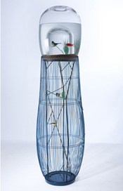 Francuska dizajnerica i umjetnica Constance Guisset autorica je originalnog hibrida koji spaja naizgled nespojivo. Duplex, njezin dizajn utočišta za vaša dva potencijalna kućna ljubimca, vjerovali ili ne, udomljuje ptice, ali istovremeno i ribe. Radi se o hibridnom elementu koji je svojevrsna kombinacija krletke i akvarija, u kojem je potonji pozicioniran iznad krletke. Na izduženoj strukturi relativno prostrane krletke „sjedi“ akvarij, koji je uzgred rečeno još i produbljen, kako bi ptica u toj specifičnoj vertikalnoj niši mogla uživati,  u ambijentu svakako neuobičajenom i doslovno nemogućem za leteću životinju, okružena vodom i ribicama. Riječima dizajnerice, ovakav iznenađujući susret evocira inače nemoguću fuziju zračnog i morskog svijeta.